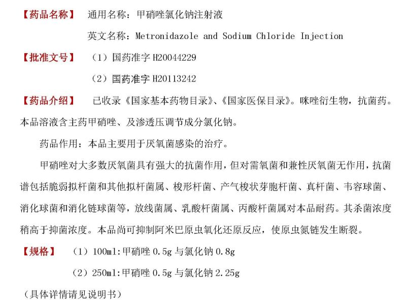 甲硝唑氯化钠注射液