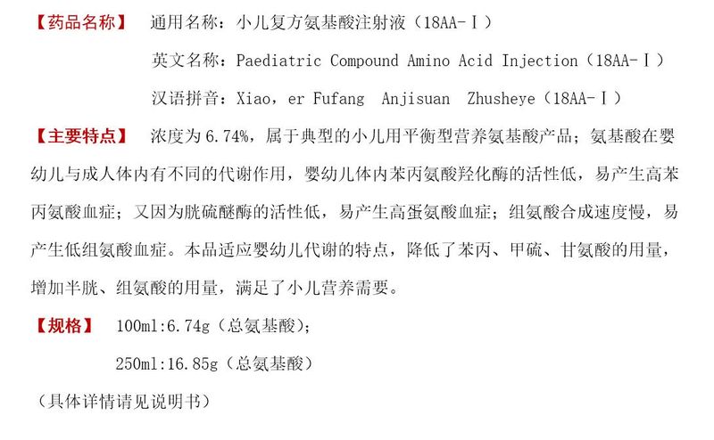 法谱 | 小儿复方氨基酸注射液(18AA-I)